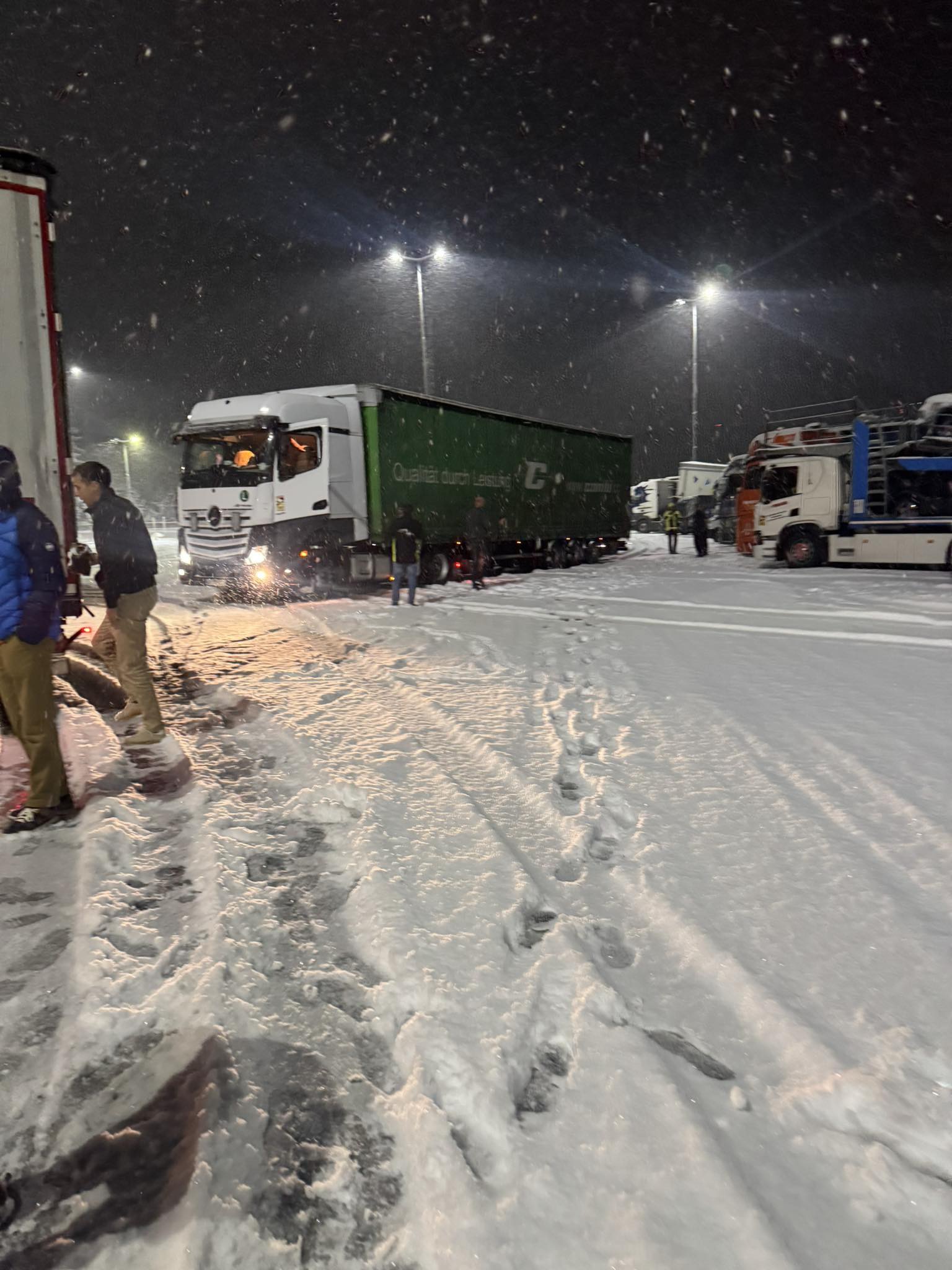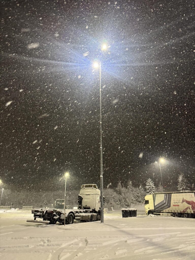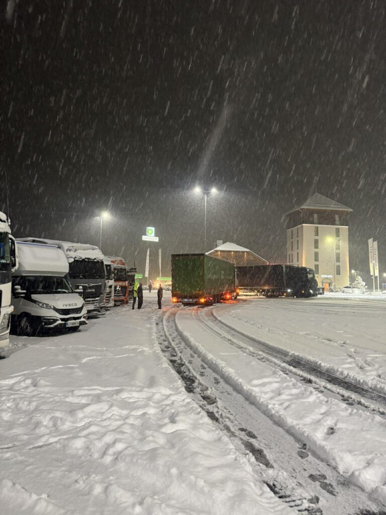 Sniježni nanosi su počeli da prave probleme i na parkinzima za kamione jer su otežana kretanja sa mjesta polaska.
